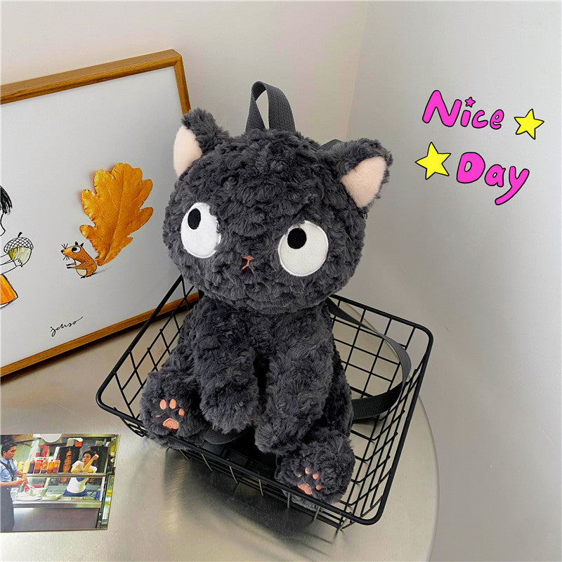Premium Realistic Cat Plush Backpack for Girls (BLACK)